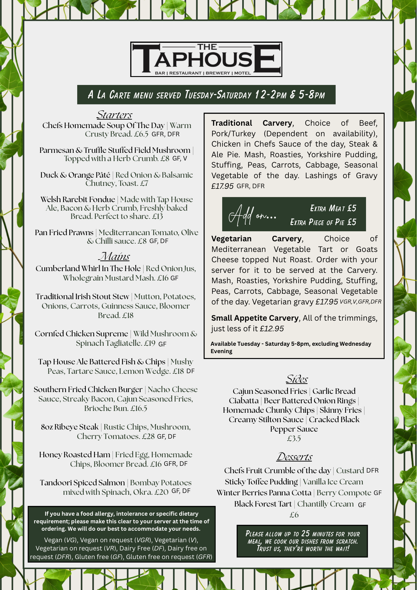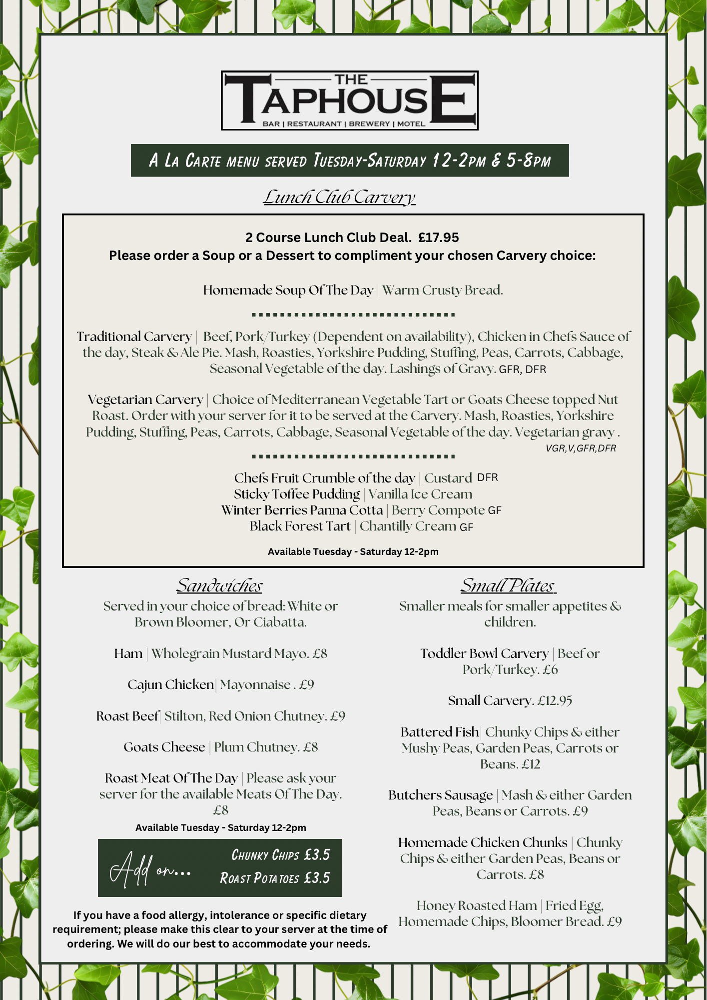 Smaller Appetite Carvery £12.95 (Not included on the lunch club deal)